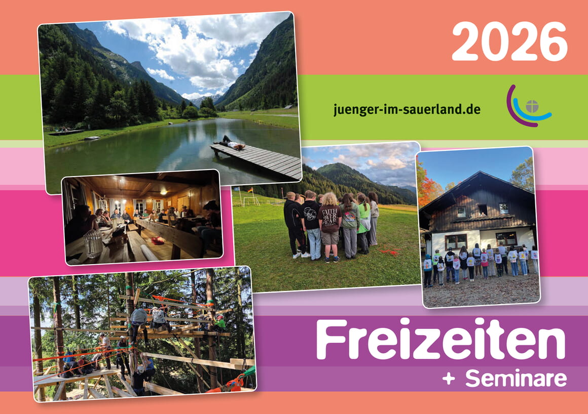 Im Jahr 2026 wollen wir euch wieder Angebote machen, Gemeinschaft im persönlichen Kontakt zu leben und zu erleben. Unser Freizeit- und Seminarprospekt liegt dafür in den Gemeindehäusern aus, ist bei den Jugendreferenten und Gemeindepädagogen oder hier zum Download erhältlich.